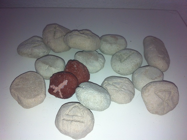 ערכה הרונות כוללת 16 אבנים עשויות מאבן עם סמלים חרוטים עליהם, ארוזה בנרתיק. ועשוייה בעבודת יד.